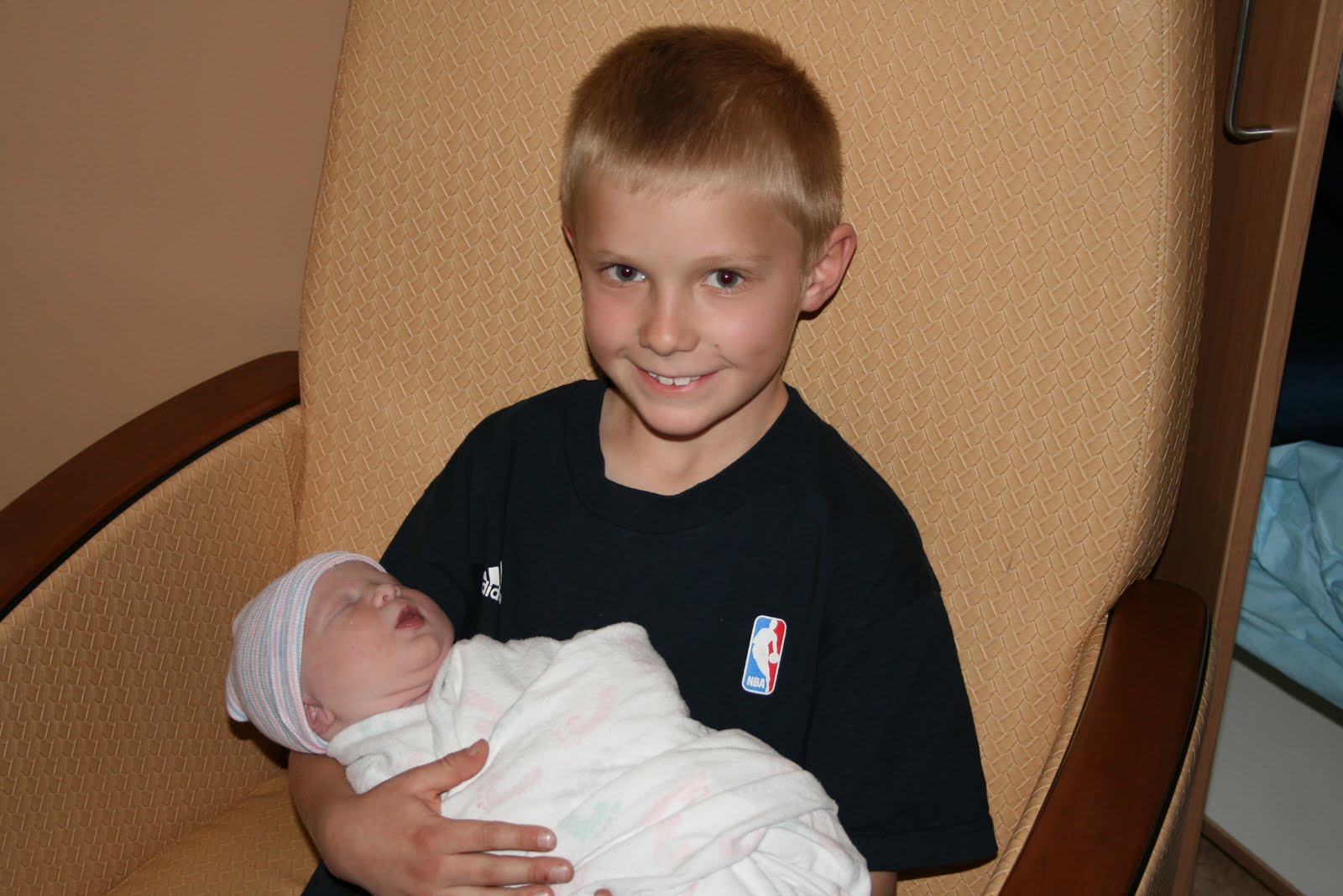 So far Liv has been a very good baby and aside from being a little sleep deprived, I am feeling great. The boys LOVE her so much and rarely leave my side. The day I came home from the hospital I started crying that I have to go back to work and leave her in 6 weeks. To make myself feel better I decided to sit on the couch and hold her for the next 6 weeks and give her as many kisses as she can stand. Fourth time around, and I am still struck by how much you can love your little baby so quickly! The first picture is at 4 days, the rest are two weeks. I am so happy that Liv has hair! All of the boys have had some hair, but I was really worried that my daughter would follow after me and be BALD until she was 2 years old. Thank heavens that when I finally get a girl, she has hair. It is lighter than Noah and Elijah's, but not as light as Luke was. I think she is going to be blonde like Luke. Now I just have my fingers crossed that she has curls, like her dad!