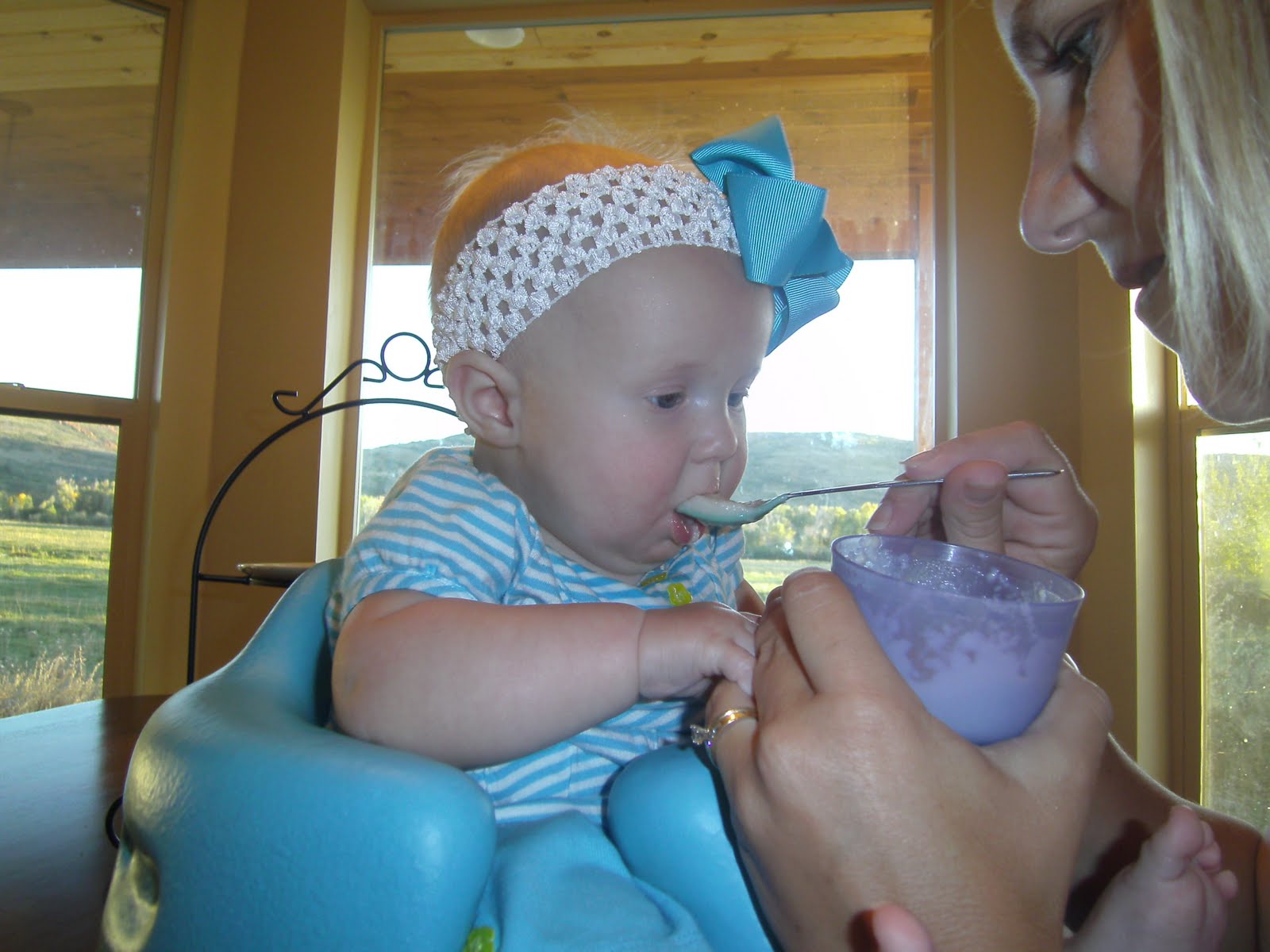 Livvy had her first taste of real food. That is if you can call rice cereal real food. She has since also had sweet potatoes and mashed potatoes. She is getting way to big, and I find myself just holding and kissing her as much as I can.